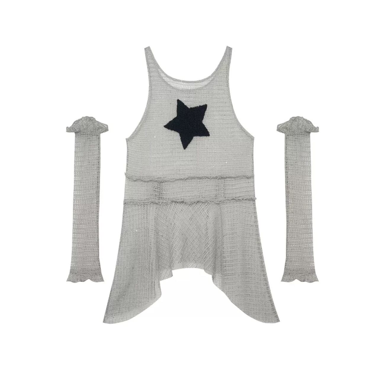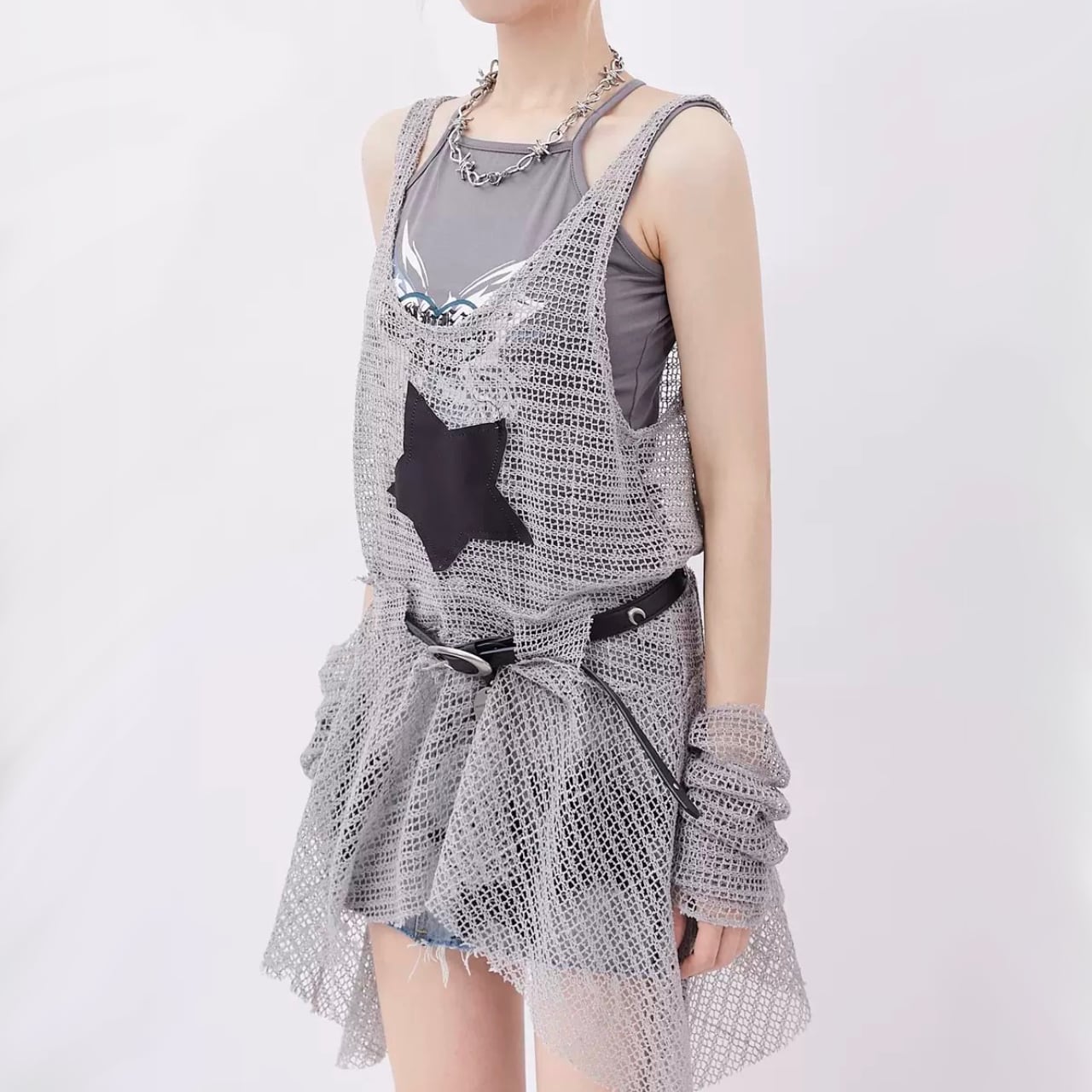 アームカバー付きのメッシュトップス インナーのキャミソール タンクトップに合わせることができ、シンプルな夏場のコーデに汎用性の高いアイテム
