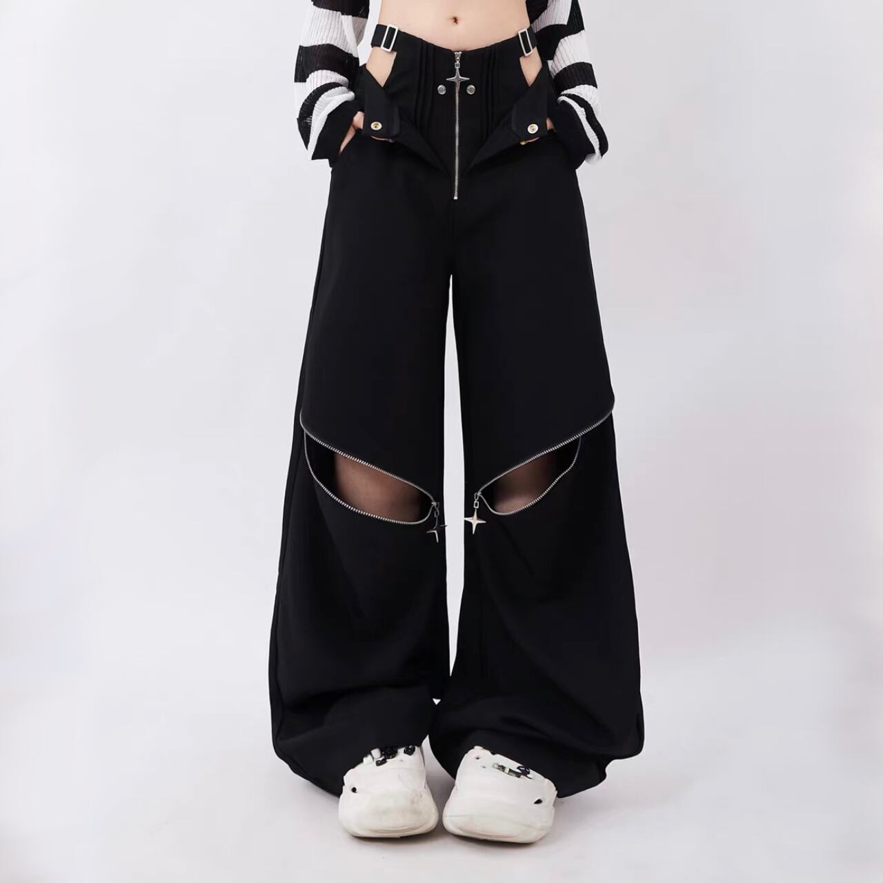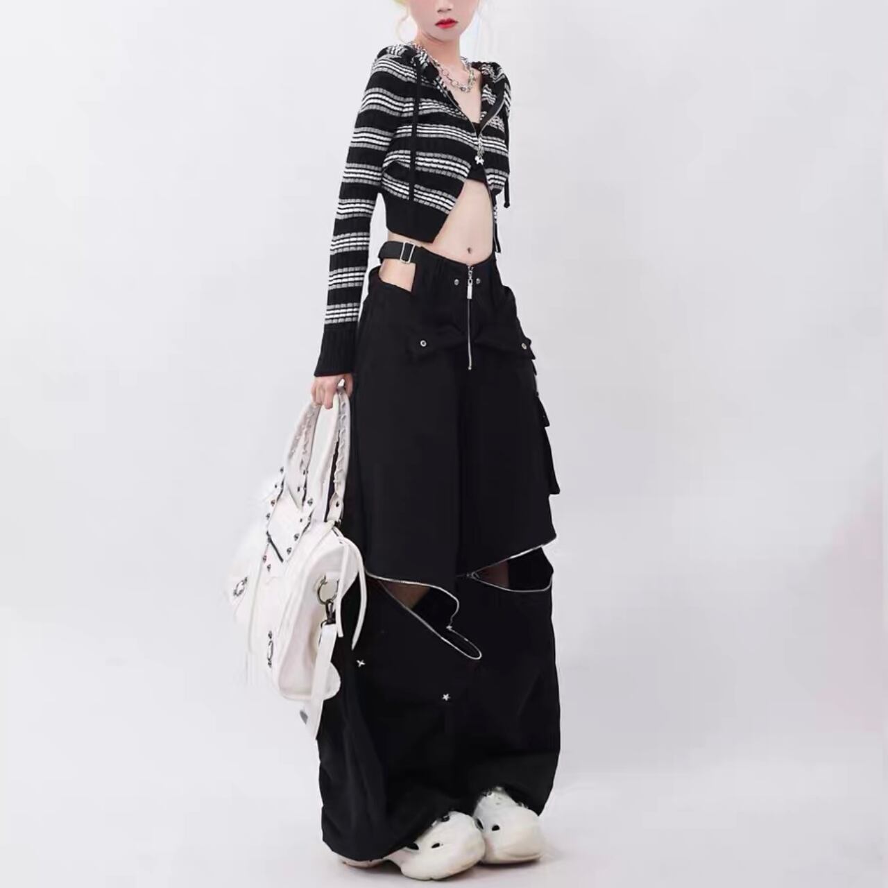 全体的に施されたギミックが奇抜性を感じるアイテム ウエストから取り付けられているボディベルトにより足長効果を持たせることができます